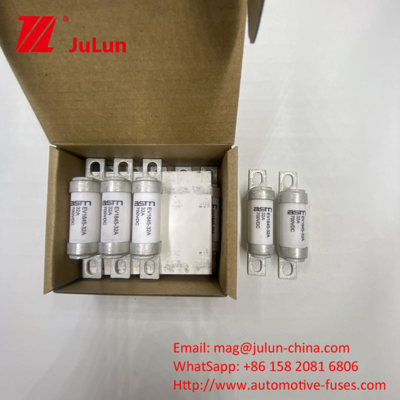 32A | 700VDC | 5~150A 700VDC Fusoio a bullone | Vattone M8 M6 | Autoveicoli, navi, imbarcazioni a motore, sistemi di stoccaggio dell'energia | FUSIONE CC per VE | 10KA | Cartone | EV1845-32A |